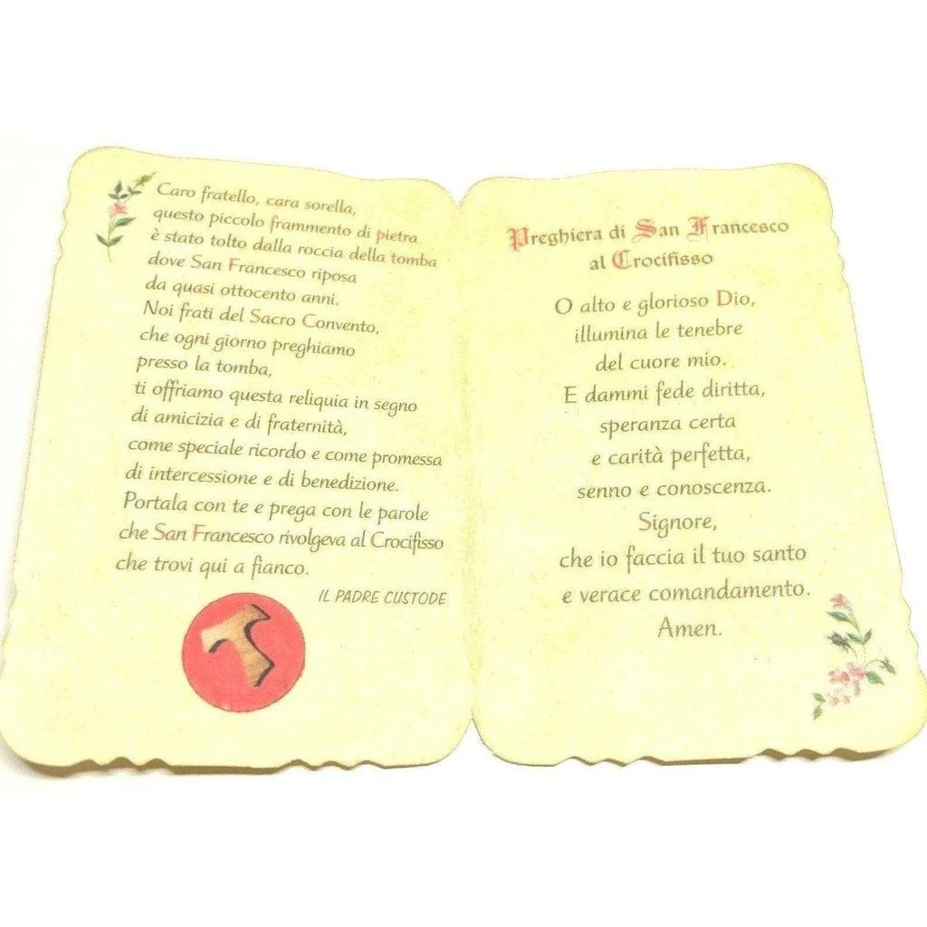St. Francis Of Assisi 2nd Class Relic - Holy Card - Rock Fragment Of The Tomb